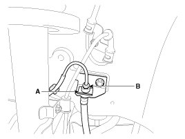 5. Disconnect the brake tube by remove the brake hose clip (A).