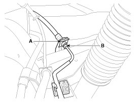 4. Loosening the tube flare nut (B).