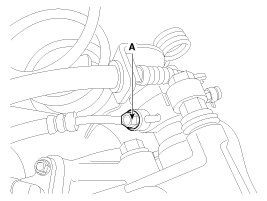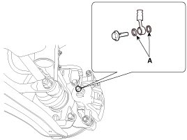 6. Disconnect the brake hose from the brake caliper by loosening the bolt (A).