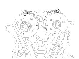 Put paint marks on the timing chain links(3 places) that meet with the timing marks of the CVVT sprockets(In, Ex : 2) and the CVVT sprocket.