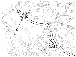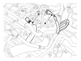 11. Disconnect the fuel hose (A) and the PCV (Positive crankcase ventilation) hose (B).
