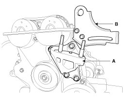 Before removing the tensioner, fix the piston of the tensioner with a pin through the hole(B) at compressed position.