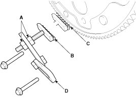 - Install the SST (09231-2B100) to hold the ring gear after removing the starter.