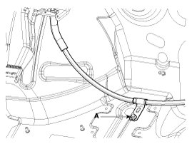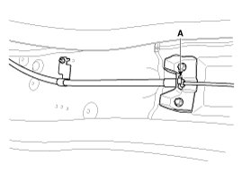 8. Remove the parking brake cable fixing clip (A) and bolts. And then remove the front parking brake cable.