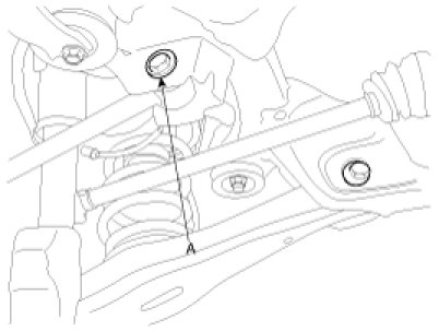 2. Adjust rear camber by turning the rear lower arm cam bolt (A) clockwise or counter clockwise. Rear camber adjustment should be made by turning the right and left cam bolt by the same amount.