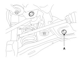 1. Loosen the nut holding the rear lower arm cam bolt (A).