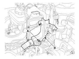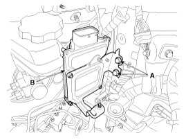 4. Remove the main wiring harness (B) after removing the nut (A).