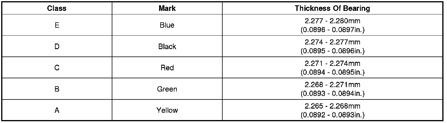 Main Bearing Size Codes
