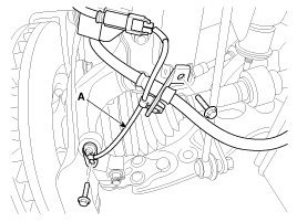 3. Loosen the wheel speed sensor mount bolt and then remove the wheel speed sensor(A) from the knuckle.