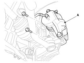 4. Remove the brake caliper mounting bolts , and then place the brake caliper assembly(A) with wire.