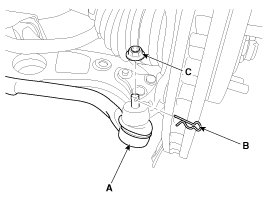 5. Remove the tie rod end ball joint(A) from the knuckle.