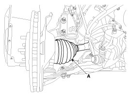 6. Remove driveshaft coking nut(A) from the front hub under applying the brake.