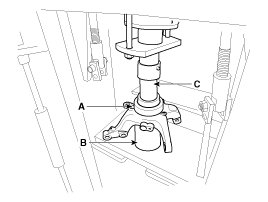 (1) Install the front knuckle assembly(A) on press.