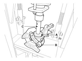 (2) Lay a suitable adapter(C) upon the hub bearing outer race.