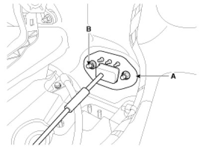 3. Remove the control cable assembly in the vehicle after removing the nuts (B) and the retainer (A).