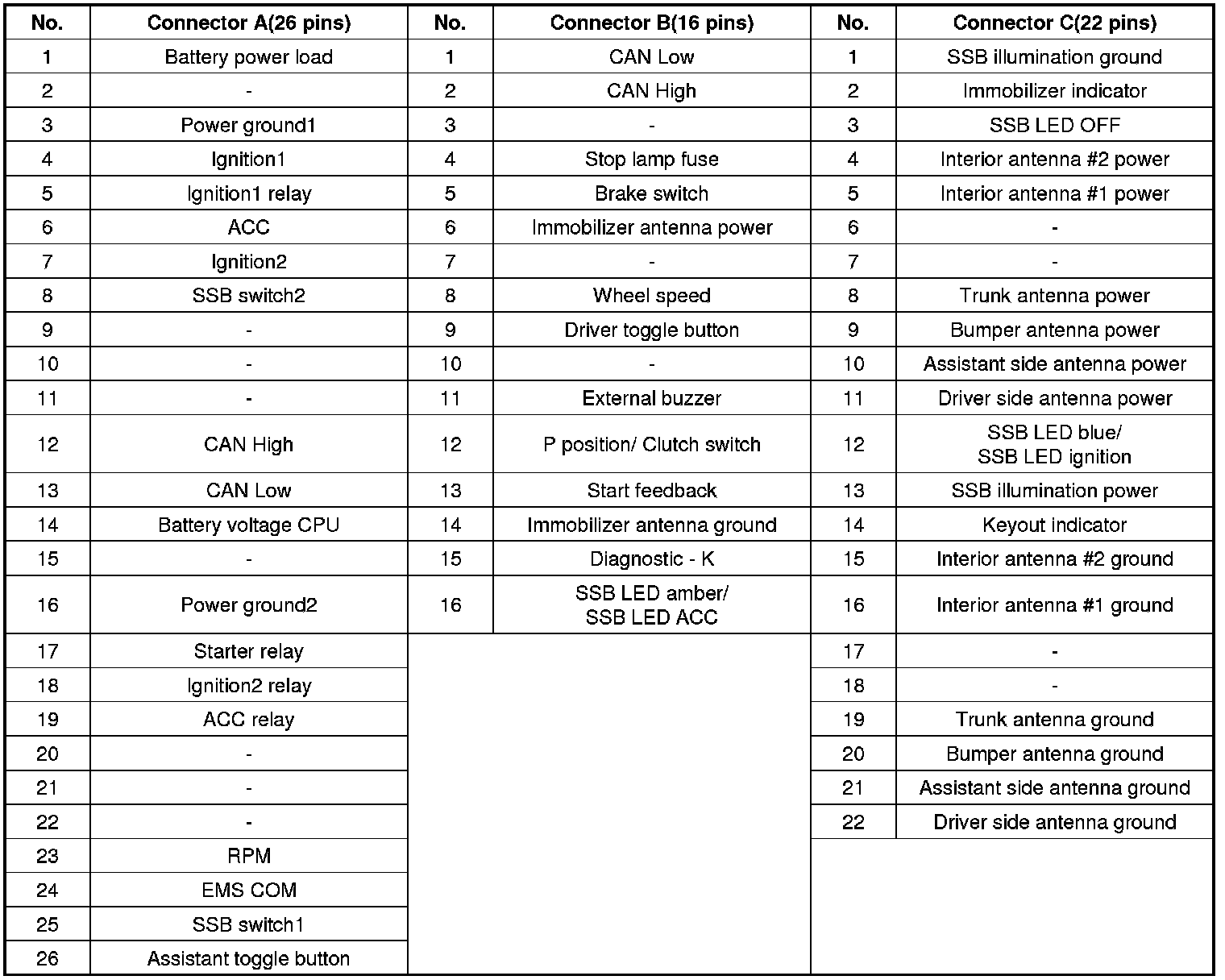 Connector Pin Information