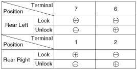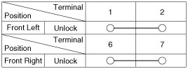 4. Check for continuity between the terminals in each switch position when inserting the key into the door according to the table.