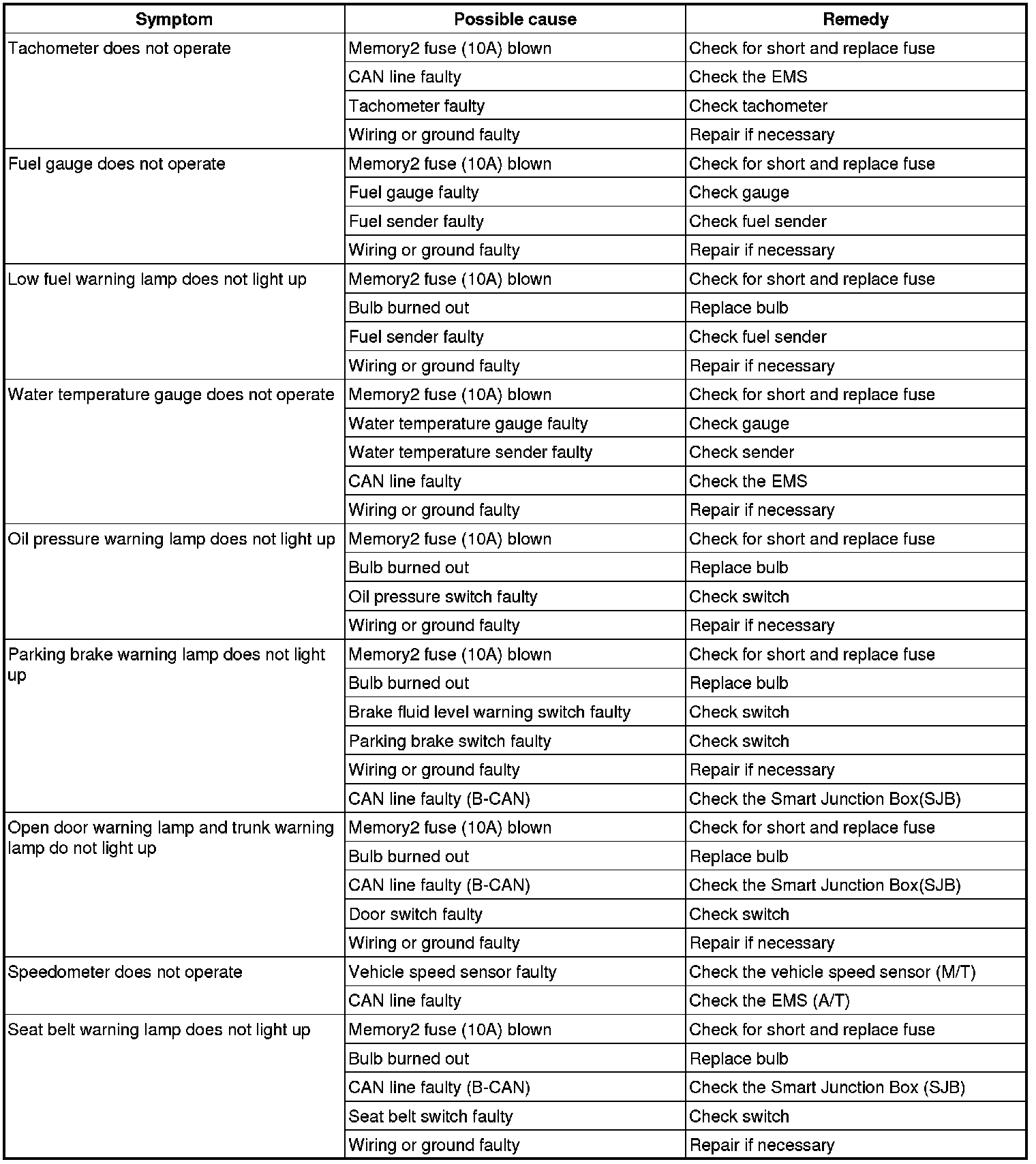 Instrument Panel, Gauges and Warning Indicators: Testing and Inspection