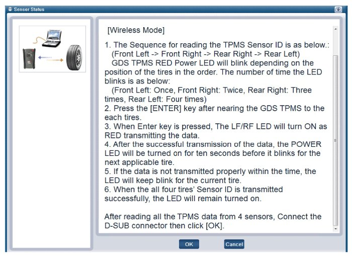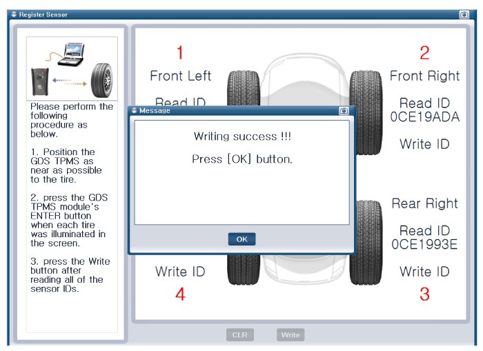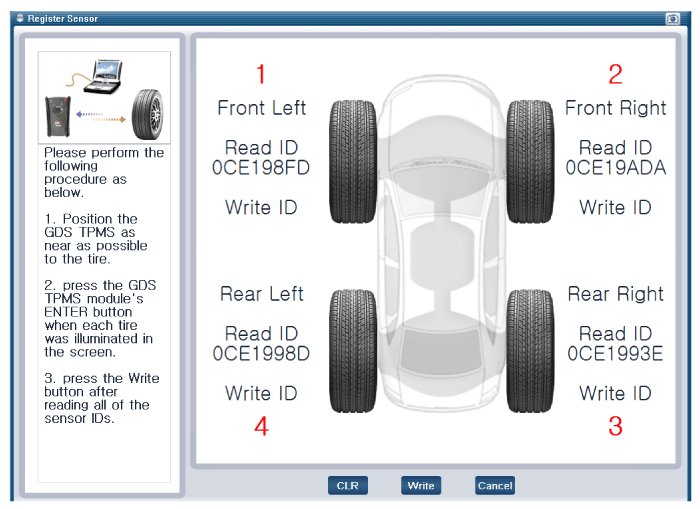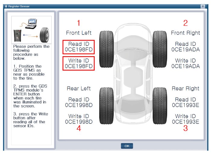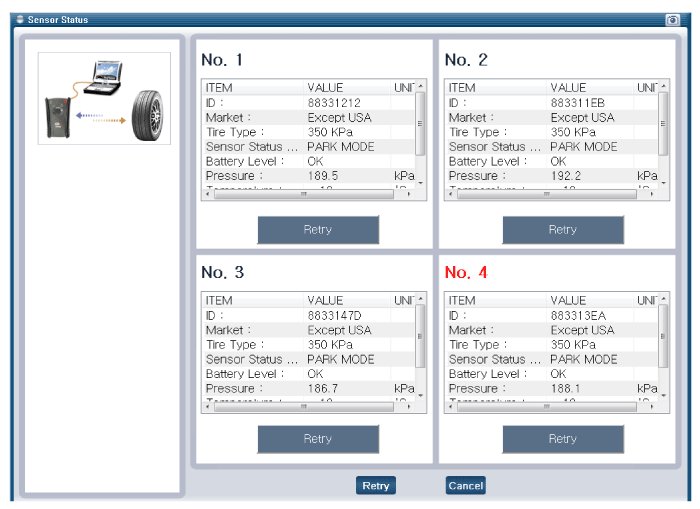- After replacing the tires or sensors, check the status of sensor is working properly after sensor registration process.