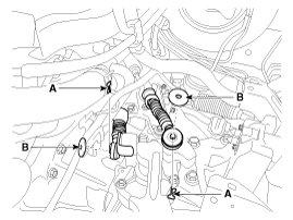 3. Separate the control cable from the control shaft after remove the pin (A) and washer (B).