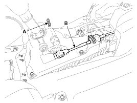 7. Remove the shift lever assembly (B) by removing the bolts (A-4ea).