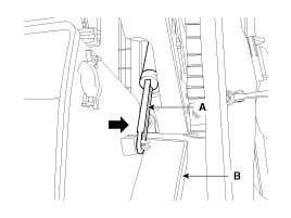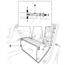 4. Disconnect the pin (A) and then remove the glove box (B).