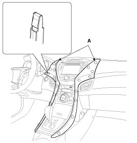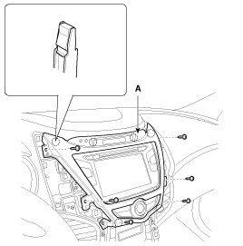2. After loosening the mounting screws, then remove the center fascia panel (A).
