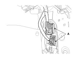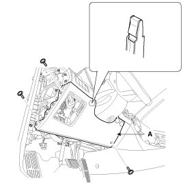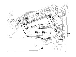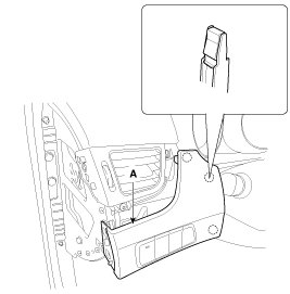 4. After loosening the mounting screws, then remove the crash pad lower panel (A).