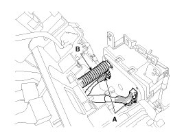 7. Disconnect the connectors (A) and hose (B).