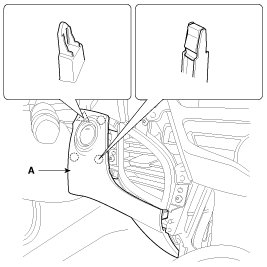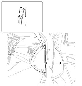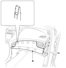 1. Using a screwdriver or remover, remove the crash pad side cover (A).