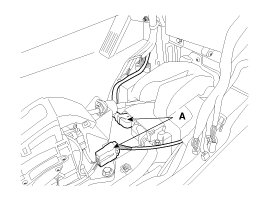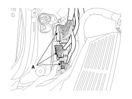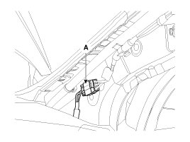 7. Disconnect the connector (A) and the mounting clips in the front pillar.