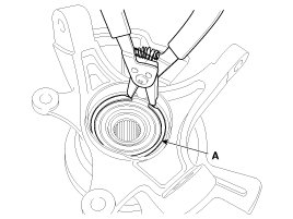 (1) Install a suitable tool (A) for removing the hub bearing inner race on the hub assembly.