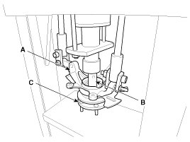 (3) Remove the hub assembly (C) from the knuckle assembly (A) by using press.