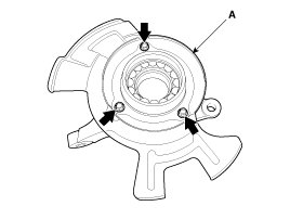 10. Loosen the strut mounting bolts and then remove the knuckle assembly (A).