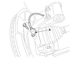 4. Loosen the bolt and then remove the wheel speed sensor (A).