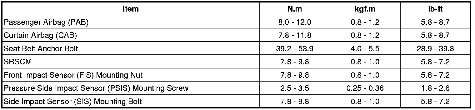 Tightening Torques
