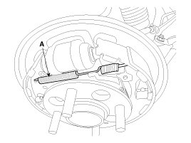 2. Loosen the bolt and then remove the parking brake cable (A) from the caliper.