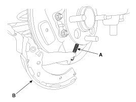 7. Disconnect the parking brake cable (A) from lining(B).