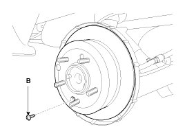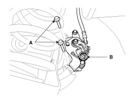 4. Remove the brake caliper assembly(B) from the torsion beam axle by loosening the bolts (A).