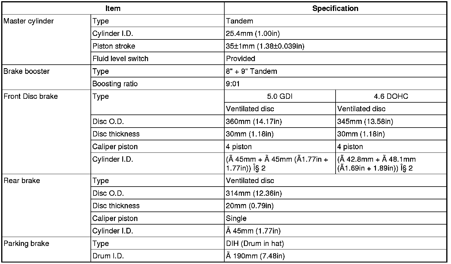 Brakes and Traction Control: Specifications