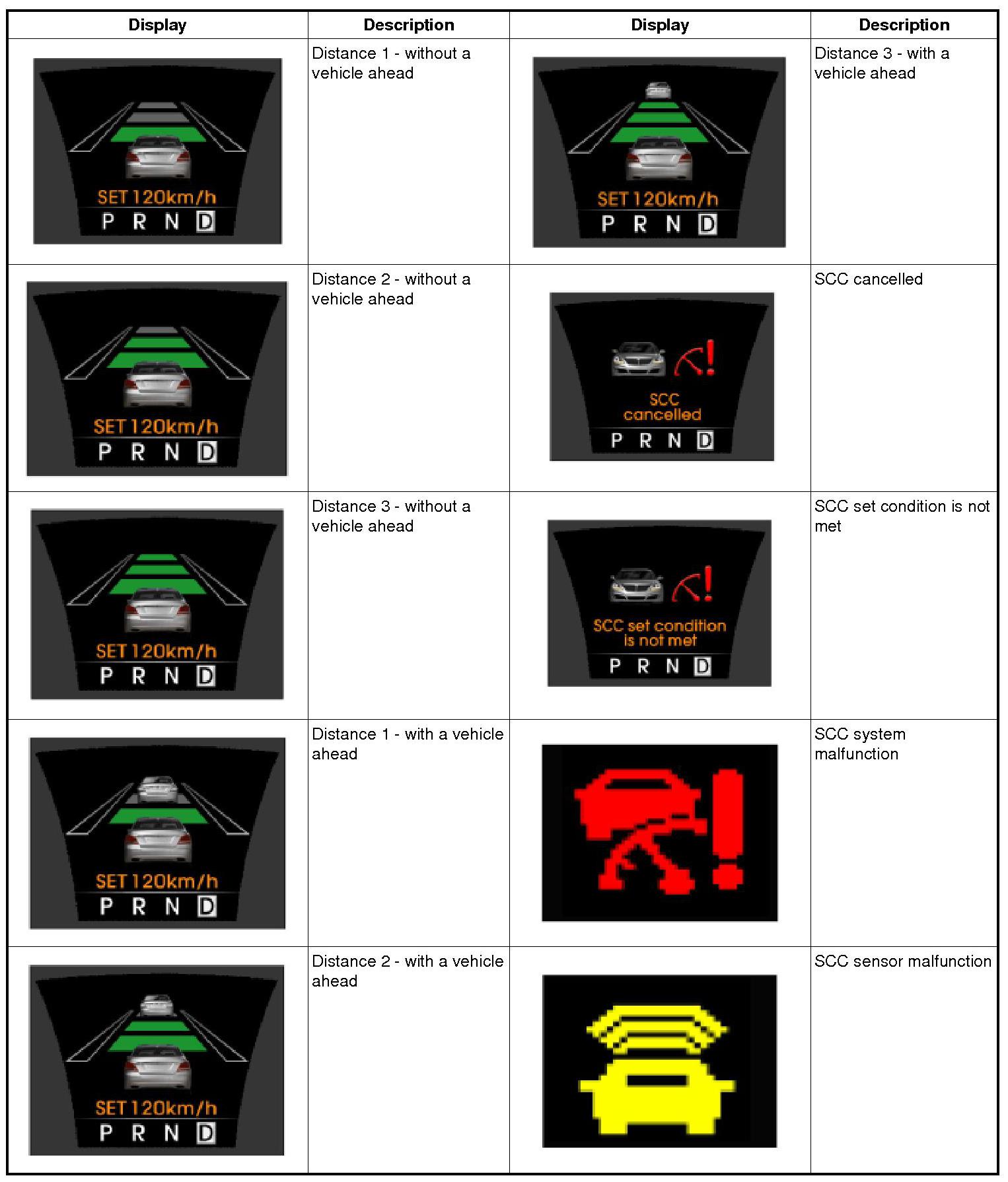 If the vehicle equipped the SCC decelerates because a vehicle ahead decelerates or moves into your lane, the warning will operate.
