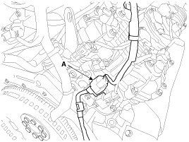 5. Disconnect the LH/RH oxygen sensor (HO2S) connectors (A) and remove the connector from the bracket.