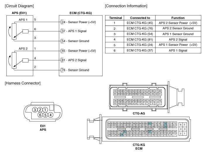 Accelerator Pedal Position Sensor: Diagrams