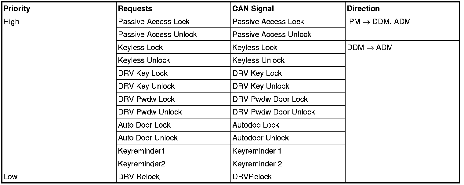 - Driver Power window Enable, Driver Power window Up, Driver Power window Down transmits the control signals (the status of ADM switch on DDM and Power window Inhibit) to ADM via CAN