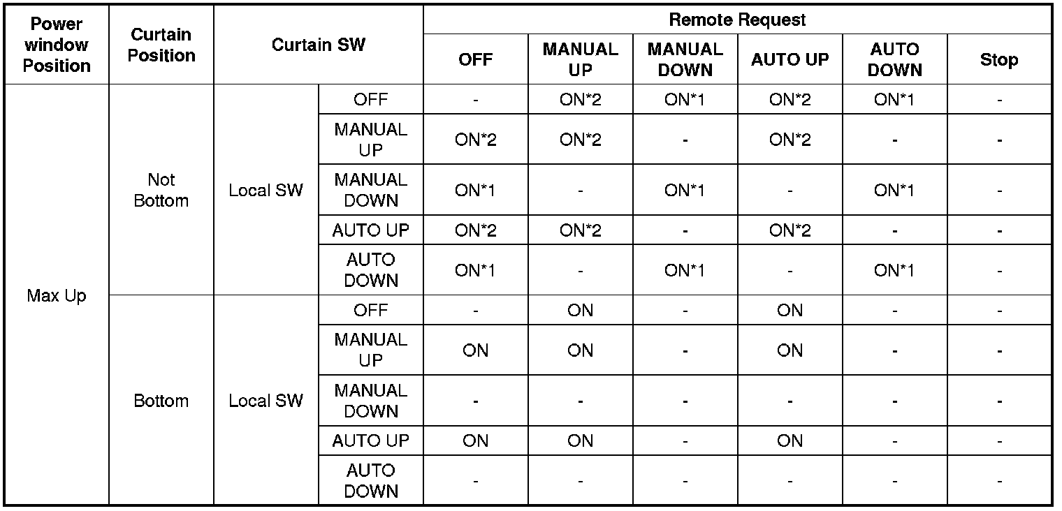 *3, *4 : If Curtain Position or Power window Position is not valid, Curtain SW is only OFF regardless of other condition.