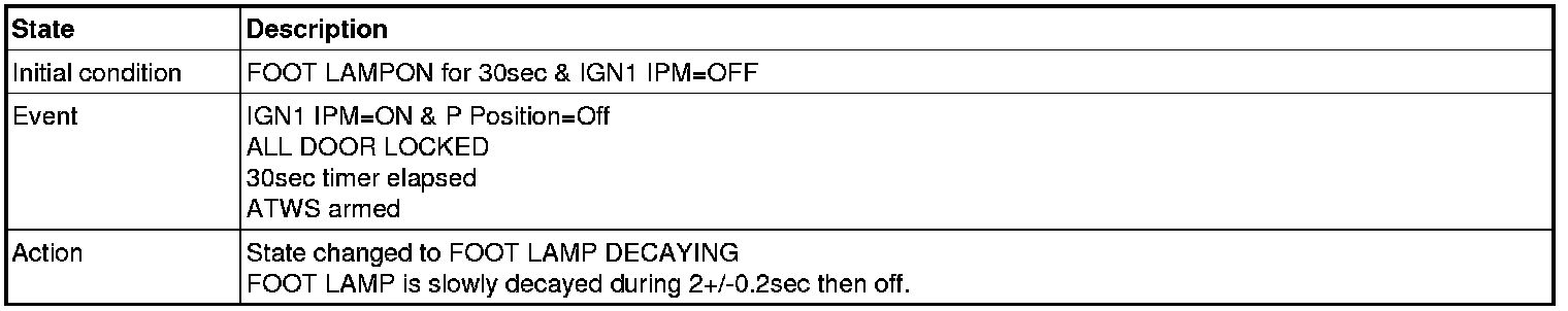 2. Transitions from Foot lamp ON for 30s state
