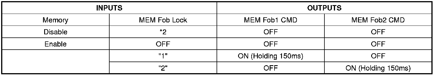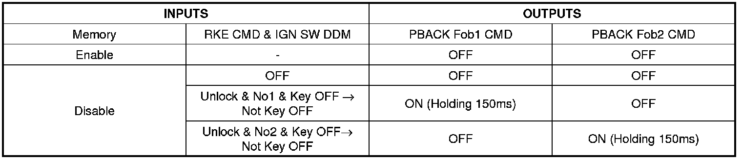 - DDM transmits MEM Fob1 CMD or MEM Fob2 CMD to ADM and other ECU via CAN communication when receives MEM Fob Lock = "1" or "2" from IPM.