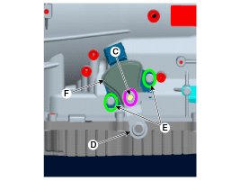 4. Remove the inhibitor switch assembly (F) after removing the bolts (E).