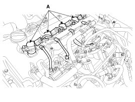 To prevent fuel being injected from injectors while the engine is being cranked, remove the fuel pump(A) relay from the fuse box.