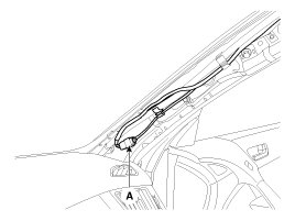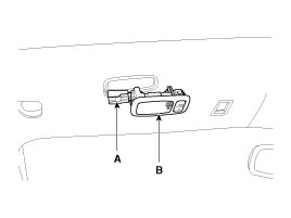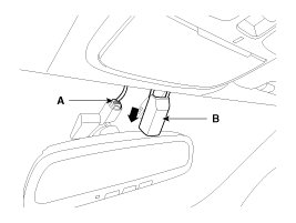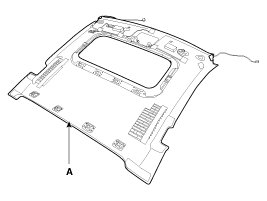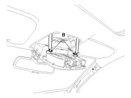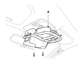 1. After loosening the mounting screws, then remove the overhead console assembly (A).